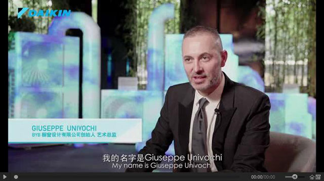 本次藝術裝置特邀意大利知名設計師Giuseppe Univochi先生精心創(chuàng)作,以藝術賦予機器個性和生命力,大金好比清新空氣的能量源,在自然中為人類傳遞著舒適和生命。
