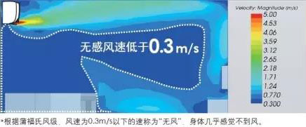 無感:向上送出的氣流,使室內(nèi)快速到達(dá)所需溫度的同時避免直吹人體的不適感,在人員活動區(qū)域形成大面積的無感區(qū)域。