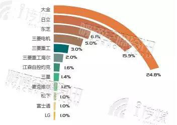 2017年度,大金以24.8%的多聯(lián)機市場占有率,繼續(xù)以壓倒性優(yōu)勢奠定著不可被撼動的領跑地位。