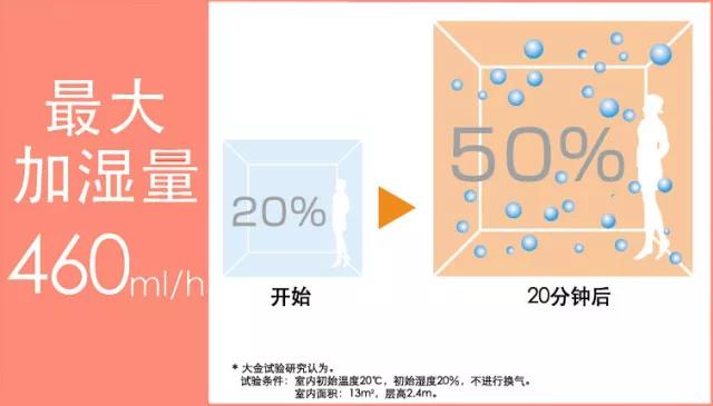 加濕量高達(dá)460ml/h,只要20分鐘,13㎡的房間濕度就可提升至50%。